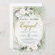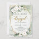 Rustic White roses eucalyptus gold oval frame Engagement Invitations,