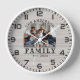 A perfect addition to your home decor with Farmhouse family Monogram Name Wood large clock, this rustic wood clock features This design features textured look of rustic white washed faux wood grain background with simple and classic black monogram text that can be personalised with family photo , name and details. This unique rustic wood is perfect for the upcoming family reunion, or a wonderful keepsake souvenir and memory gift.