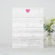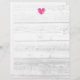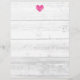 Rustic white barn wood grain line wedding letterhead. Country chic stationery writing paper for menu, notes, letters, instructions, invitations, announcements, activities, routes etc. Fuchsia pink heart with light grey wooden background image. Part of beautiful matching collection theme set for trendy bride and groom getting married. Romantic shabby chic design. Great for outdoor farm or summer marriage. Vintage style stationary.