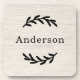 A rustic white-washed wood grain beverage coaster featuring a black laurel branch wreath and custom family name monogram in elegant script. The clean, pale wood texture paired with the bold laurel design creates a fresh farmhouse look for everyday entertaining. Perfect as a personalized housewarming or wedding gift. Coordinates with the Rustic Wood Laurel collection. All text is fully customizable.