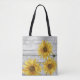 Stylish and cute, yet functional, this Rustic White Wood Sunflowers Tote Bag is the perfect bag to use on a long day out on the town. Add your own typography for your name, initials, monogram, or phrase. Has matching accessories.