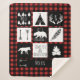 Rustic sherpa fleece blanket with a wilderness animals adventure theme plus red and black lumberjack style plaid. Customise by adding your own name and initial letter. This blanket makes a fantastic gift!