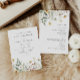 This design features a watercolor border of wildflowers in shades of gold, red, blue, and green. Perfect for spring and summer weddings.