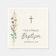 This rustic floral Baptism paper napkin features wildflowers and a cross on a soft cream background.