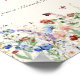 This is a colourful and bohemian table sign for a wedding. The design features elegant and summery delicate wildflower florals in pretty shades of blue, terracotta, pink, rust, purple and yellow on a creamy ivory background. The butterflies and bees add the finishing whimsical and pretty touch.