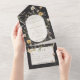 ALSO AVAILABLE WITH A QR CODE TO SCAN. This design features a soft wildflower frame around a cream oval on a charcoal background. Personalised All-In-One invitations are a unique combination of both a beautifully printed custom invitation with an easy to tear off perforated RSVP postcard. And they are so easy to use! You simply fold, then seal the back flap with the three included clear stickers, and mail. And when your guests receive your custom invite, they just tear the perforated RSVP Card off and drop it back in the mail to you!