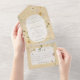 ALSO AVAILABLE WITH A QR CODE TO SCAN IN THE RSVP AREA. This design features a soft wildflower frame around a cream oval on a tan background. Personalised All-In-One invitations are a unique combination of both a beautifully printed custom invitation with an easy to tear off perforated RSVP postcard. And they are so easy to use! You simply fold, then seal the back flap with the three included clear stickers, and mail. And when your guests receive your custom invite, they just tear the perforated RSVP Card off and drop it back in the mail to you!