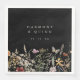 Our wedding paper napkins feature hand-painted rustic watercolor boho florals adorned with butterfly details with your names and wedding date for the perfect moody, romantic vibe.
