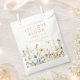 This design combines elegance and whimsy, pairing minimal modern text with a row of delicate watercolor wildflowers perfect for boho-inspired weddings.