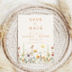 This design combines elegance and whimsy, pairing minimal modern text with a row of delicate watercolor wildflowers perfect for boho-inspired weddings.