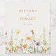This design combines elegance and whimsy, pairing minimal modern text with a row of delicate watercolor wildflowers perfect for boho-inspired weddings.