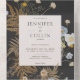 Capture the charm of nature with our rustic boho wedding invitation, featuring delicate clusters of dried, pressed wildflowers and ferns arranged on a light charcoal black background. Cream-toned text boxes offer a soft contrast for your details, framed by the organic beauty of botanical textures. With the couple's initials elegantly displayed at the top, this design brings a romantic, earthy feel to your special day—perfect for weddings with a natural, whimsical touch. Created by Simply Farmhouse Press.
