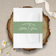 This lovely wedding invitation belly band design features a hand-drawn wildflower sprig, a lovely sage green background, and your names in white calligraphy script. This belly band compliments the Rustic Wildflowers invitation beautifully. See the collection for more items!
