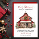 This watercolor rustic winter barn Christmas card with a festively decorated barn sprinkled with snow and surrounded by pine trees would be perfect to send from your farm to friends and family. The message is customisable and the templates are super easy to use. In seconds you can see your unique Christmas cards.
