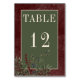 Rustic Winter Berries & Pine Burgundy Wedding Table Number