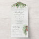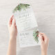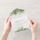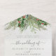 Beautiful all-in-one wedding invitations featuring hand-painted botanical watercolor illustrations of winter greenery, pine and spruce branches, cones and holly berries. Perfect choice for winter or Christmas holiday themed weddings.