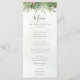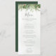Beautiful wedding menu card featuring hand-painted botanical watercolor illustrations of winter greenery, pine and spruce branches, cones and holly berries. Perfect choice for winter or Christmas holiday themed weddings.