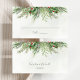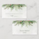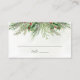 Beautiful wedding place card featuring hand-painted botanical watercolor illustrations of winter greenery, pine and spruce branches, cones and holly berries. Perfect choice for winter or Christmas holiday themed weddings.