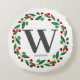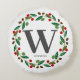 Rustic Winter Christmas Monogram Initial Wreath Round Cushion