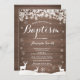 Rustic Winter Deer Baptism Invitation. White Snowflake. Boy or Girl Baptism. First Communion. Christening. Child Dedication. Rustic Wood Background. Country Vintage Retro Barn. For further customisation, please click the "Customise it" button and use our design tool to modify this template.