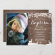 Rustic Winter Deer Baptism Invitation with custom photo. White Snowflake. Boy or Girl Baptism. First Communion. Christening. Child Dedication. Rustic Wood Background. Country Vintage Retro Barn. For further customisation, please click the "Customise it" button and use our design tool to modify this template.