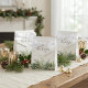 Bring a touch of rustic winter charm to your wedding reception with these elegant winter greenery favour boxes. These beautiful boxes feature a festive design of pine branches and berries, adding a touch of natural sophistication to your celebration. The boxes are perfect for a variety of treats, like chocolates, candies, or small gifts. Personalise the boxes with the names of the couple and their wedding date to create a lasting memento for your guests.