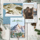 Rustic Winter Lodge in the Mountains Adventure Begins-Save the Date is a beautiful watercolor winter scene with a snowboarding couple enjoying a campfire surrounded with cosy log lodges and cabins, ski mountains with ski lifts. Personalise this card with your own photo to create special memories. Perfect announcement card for your wedding in the mountains, special family or holiday event in the mountains. Change the text to match your event.