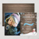 Rustic Winter Onederland 1st Birthday Invitation with custom photo. Snowman. Blue and White Snowflake. First Birthday. Boy 1st Bday Invite. Rustic Wood Background. For further customisation, please click the "Customise it" button and use our design tool to modify this template.