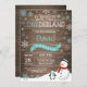Rustic Winter Onederland 1st Birthday Invitation. Snowman and Penguin. Aqua Teal Turquoise and White Snowflake. First Birthday. Boy or Girl 1st Bday Invite. Rustic Wood Background. Black and White. For further customisation, please click the "Customise it" button and use our design tool to modify this template.