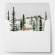 Enchanting winter cabin wedding invitation envelopes. Featuring a delicate watercolor illustration of a snow-dusted log cabin nestled in a peaceful pine forest. A romantic hint of the cosy celebration to come.