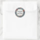 A stylish and elegant design on a dark teal blue background featuring a border edge of pine cones, red berries and winter cotton flowers in muted shades of dark green, brown and orange. There are soft snow flurries across the foliage giving a chic and upmarket feel to the overall finish. If you are getting married in winter, have a winter wonderland or rustic woodland theme then this budget friendly "save the date" round sticker is ideal.