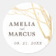Rustic Winter Tree White Script Wedding Classic Round Sticker