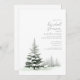 Beautiful winter watercolors in shades from soft sage to dark forest green, flowing handwritten script text and elegant design layouts provide the basis for this exciting wedding suite. The coordinating Bridal Shower invitation shown here with striking winter fir trees on a white background, provides a template to easily add your event details. Search ID1049 to see other pieces and colour choices for this set.