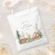 Woodland themed baby shower favours and treat bags featuring rustic winter forest and animals design.