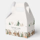 Woodland themed baby shower favour boxes featuring rustic winter forest and animals design.