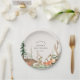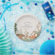 Woodland themed baby shower paper plates featuring rustic winter forest and animals design with personalised name and date.