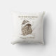 Cute, nature themed Holiday throw pillow featuring original artwork of a whimsical, sleeping owl wearing an old-fashioned nightcap with the greetings "OWL BE HOME FOR CHRISTMAS, if only in my dreams..." and "Happy Holidays" in gold lettering. Reverse side is a rustic winter white birch bark pattern.