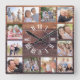Rustic Wood 12 Photo Collage Square Wall Clock