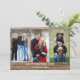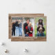 Send your new year wishes with a personalized 3 photo collage card with a rustic look added by the brown barn wood background.