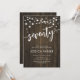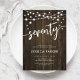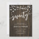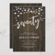 70th Birthday Party Invitation. Rustic design with dark brown wood pattern. Classy invite card featuring fairy string lights and script font. Perfect for a stylish seventieth bday celebration. Personalize with your own details. Can be customized for any age! Printed Zazzle invitations or instant download digital printable template.