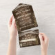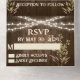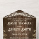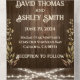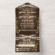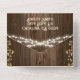 Elegant dark wood background surrounded by leaves and hanging party lights. These wedding invitation includes the wedding info and RSVP postcard that your guests tear off and send. Envelopes are not needed. Perfect for a Summer, Autumn, Spring, Boho, or outdoor wedding!