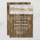 Rustic chic wedding invitation, with graphics of a rustic weathered wood background. Graphics of elegant white lace, at the top, has a champagne wheaten colour double strand ribbon tied in a knot. Personalise the white text for your special day. Matching products available.