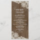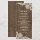 Rustic modern outdoors wedding menu design with elegant lace elements at the top and bottom on a printed faux wood texture background. An elegant and stylish rustic design, perfect for outdoor or vintage themed weddings! This design is a part of a wedding suite "Rustic Wood and Lace". Matching items are available.