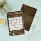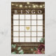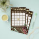 Rustic wood and String lights bridal shower bingo game with pretty floral rose and gold heart.