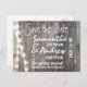 Rustic wood and string lights wedding save the date, vintage grey wood background decorated with string of lights. Perfect wedding invite for wedding with night lights wedding theme, barn theme, garden theme, outdoor wedding with twinkle lights.