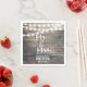 Rustic wood and string lights wedding napkins. Custom vintage grey wood background decorated with string of lights. Perfect wedding invite for wedding with night lights wedding theme, barn theme, garden theme, outdoor wedding with twinkle lights.