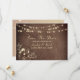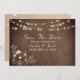 Elegant, vintage, rustic wood Wedding Save The Date Invitation with gold floral lace and string lights.