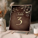 Set the tone for your rustic fall wedding with this elegant table number card featuring rich wood grain texture, glowing string lights, and delicate gold floral accents. Perfect for barn weddings, woodland receptions, or cosy candlelit celebrations, this design blends romantic charm and country elegance. Personalise the table number and other details to suit your big day.