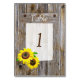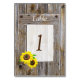 Cute country and western style distressed wood and sunflower table number cards for your wedding reception.