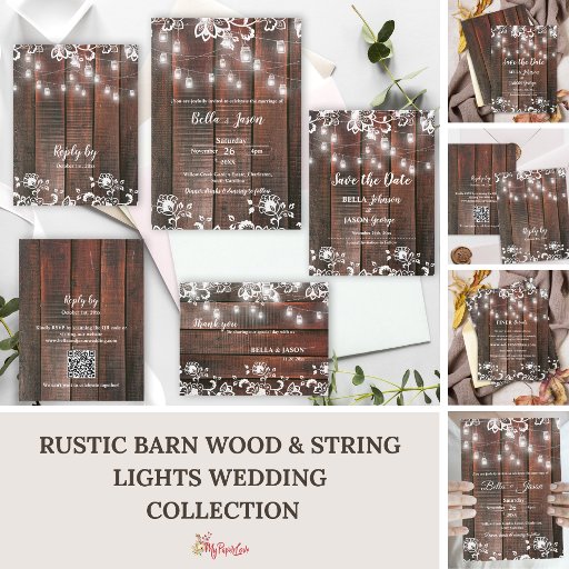 Rustic Wood & White Lace Floral Wedding SuiteDesigned by Mypaperlove Designs